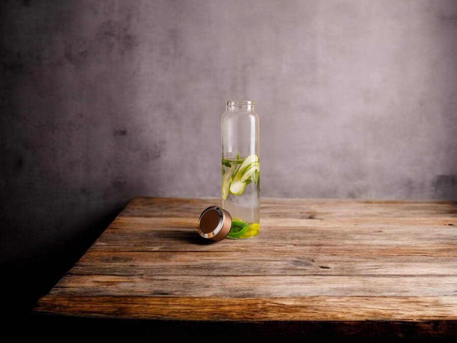 LeCasa - Borosilicate Glass Bottle With Copper Colour Screw Lid - 3080 | Capacity - 500ML | 100% Pure Borosolicate Glass With ISO Certification | BPA Free, Leak Proof, Rust Free & Eco Friendly |