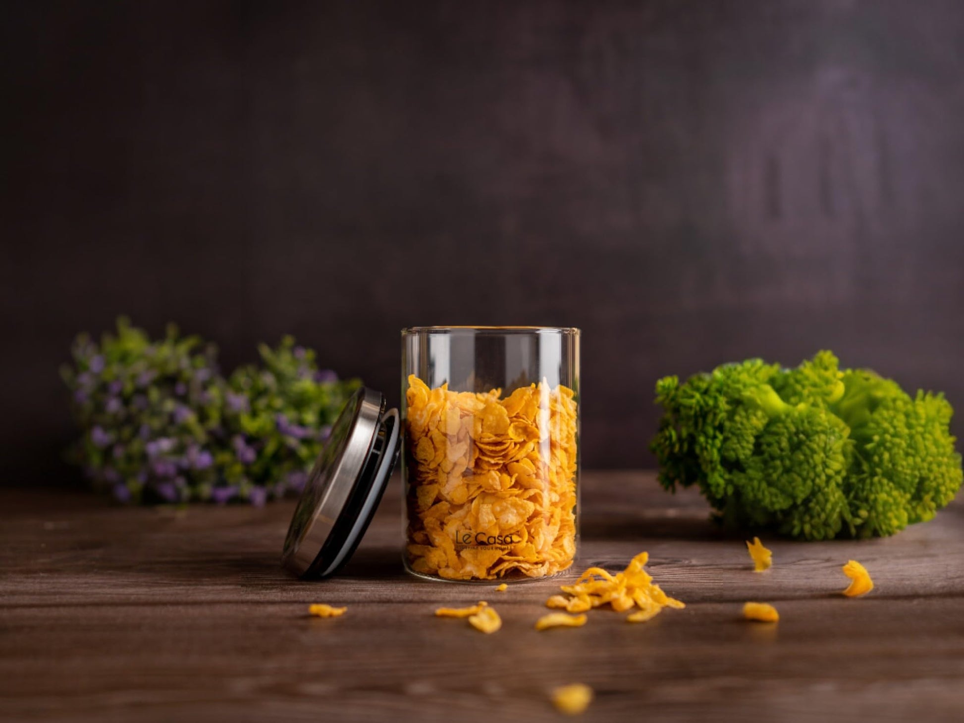 LeCasa - Denver Airtight Borosilicate Round Glass Jar With Steel Push Lid 700ML | 100% Borosilicate Glass With ISO Certification | Ideal Use For - Storage, Serving, Snacks , Grocery Storage |