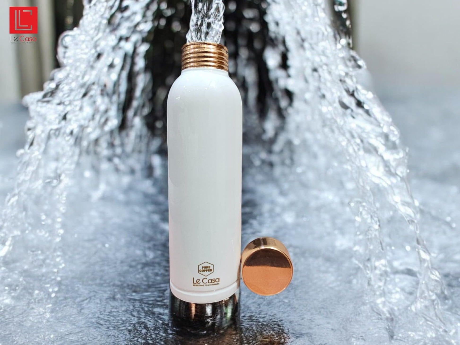 The LeCasa Copper Water Bottles For Home are Non Toxic , BPA Free , Rust Proof , Leak Proof . Water Stored in copper vessels alos has anti-inflammatory and anitimicrobial properties that protects your family against bacterial infections