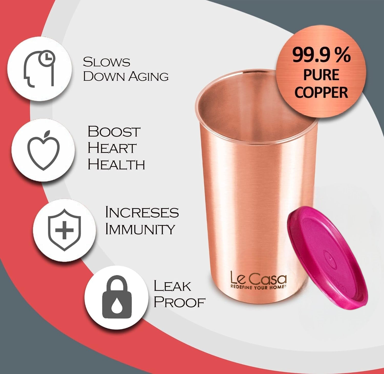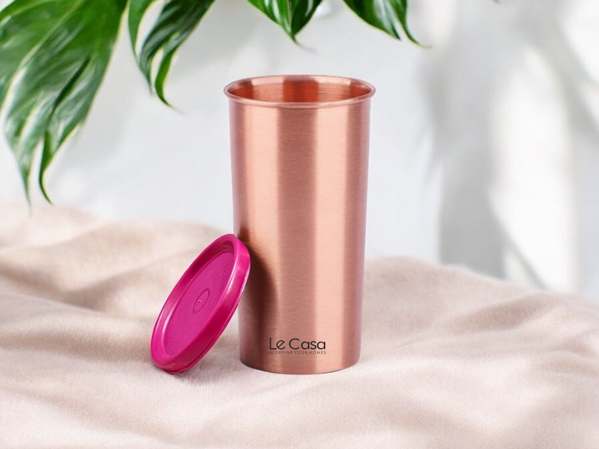 LeCasa - Energy Copper Water Tumbler 500ML Matt With Plastic Lid | 100% Pure Copper With ISO Certification |