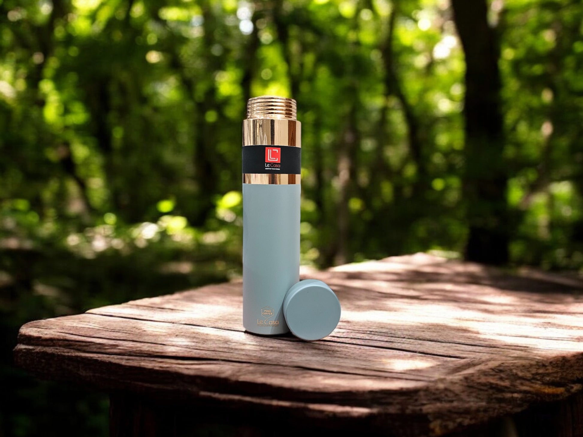 LeCasa - Greek Copper Water Bottle 1000ML | Color - Berrish Grey | 100% Pure Copper With ISO Certification |
