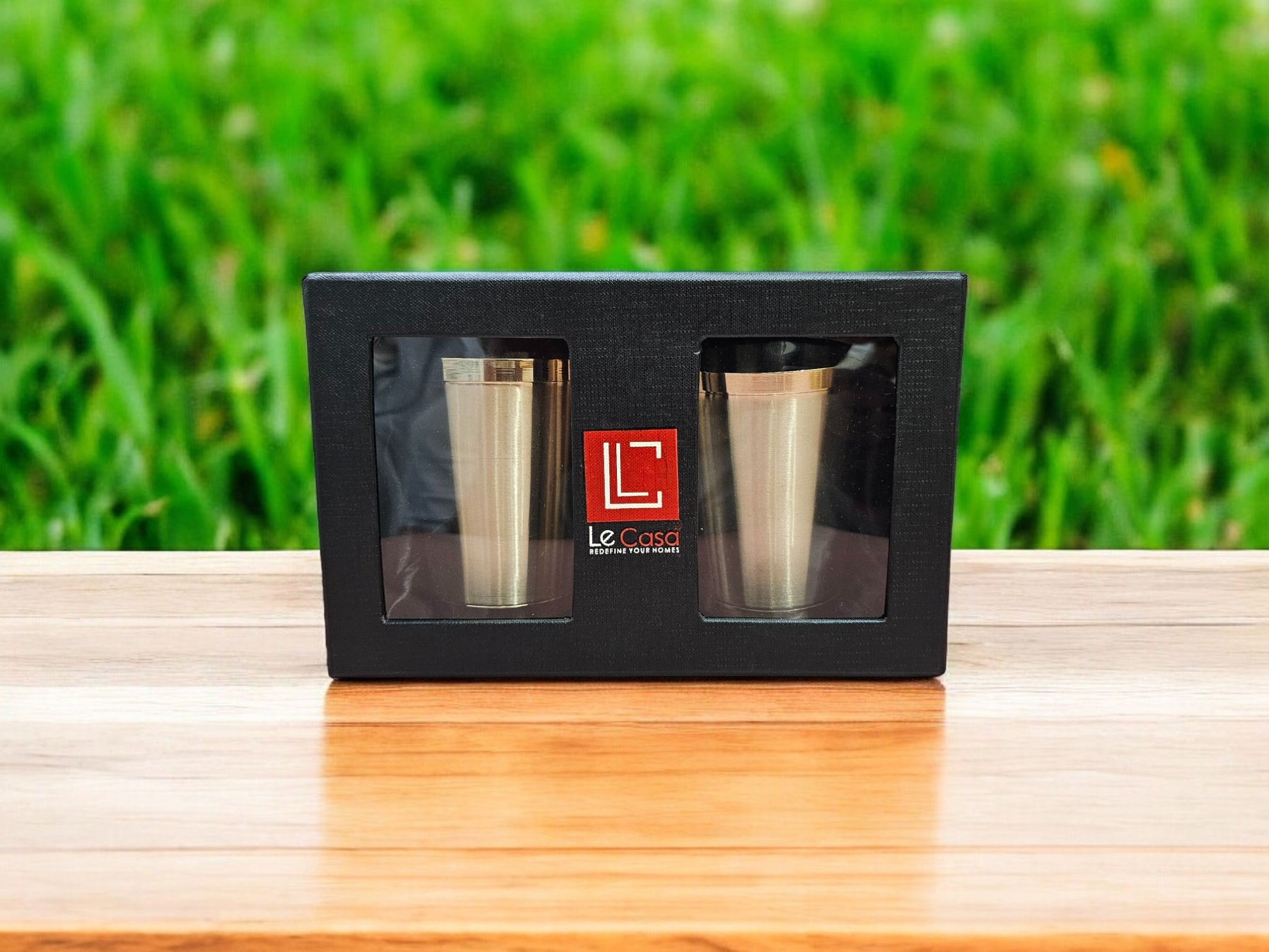 LeCasa - Kansa Glass with Gift Box Packaging | Design - Straight Set of 2 | Capacity - 300ML Each | 100% Pure Kansa Material with ISO Certification |